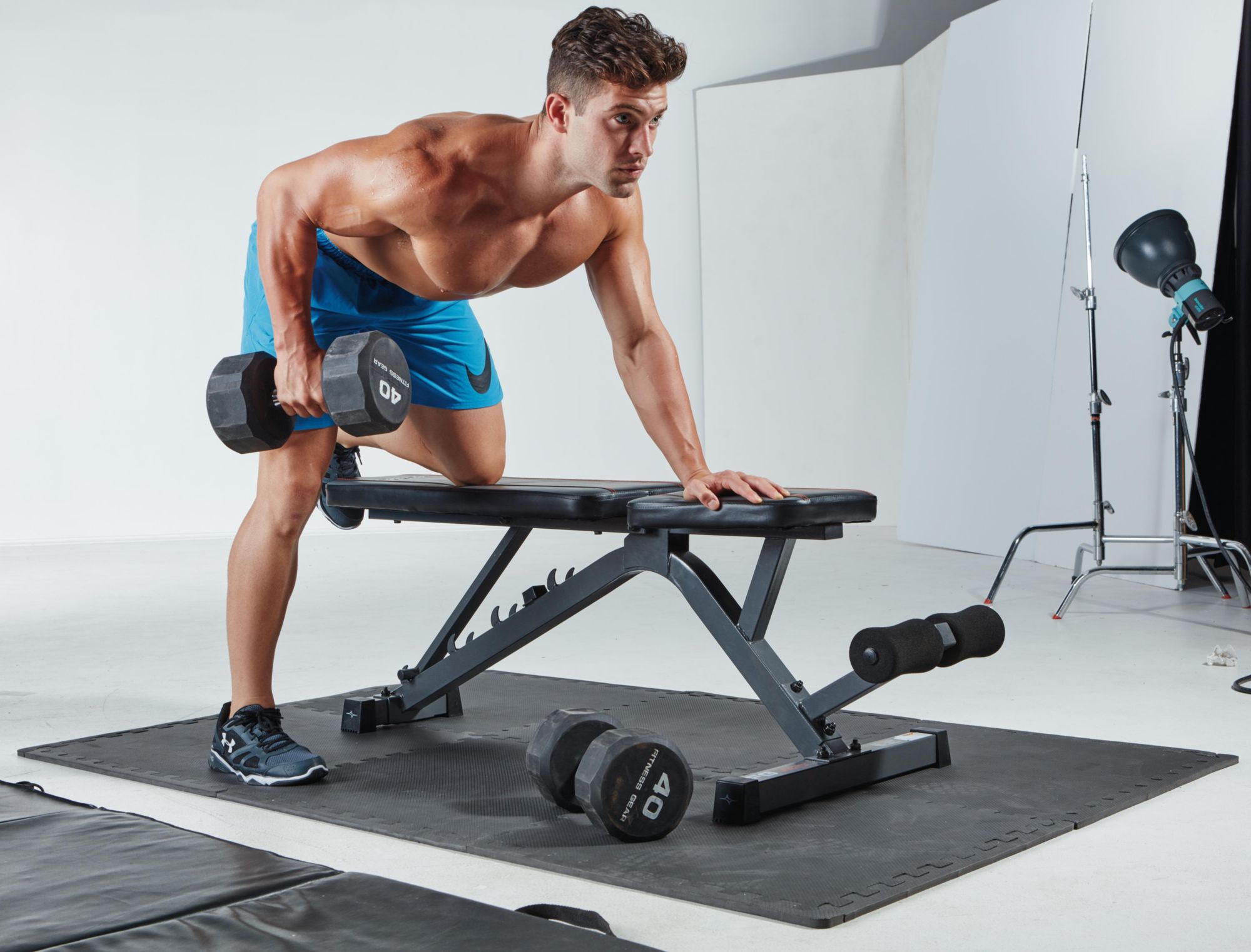 Place the non skid floor guard under a heavy weight bench treadmill or elliptical to protect the floor from damage.